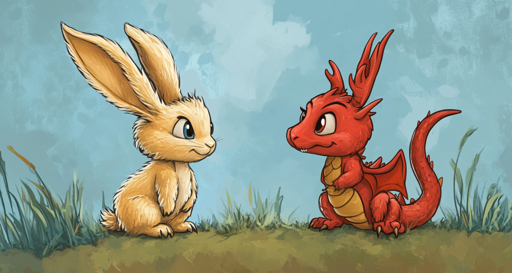 Пішла Лисиця, зажурилася. А Дракон далі йде. Впіймав Зайця, каже: